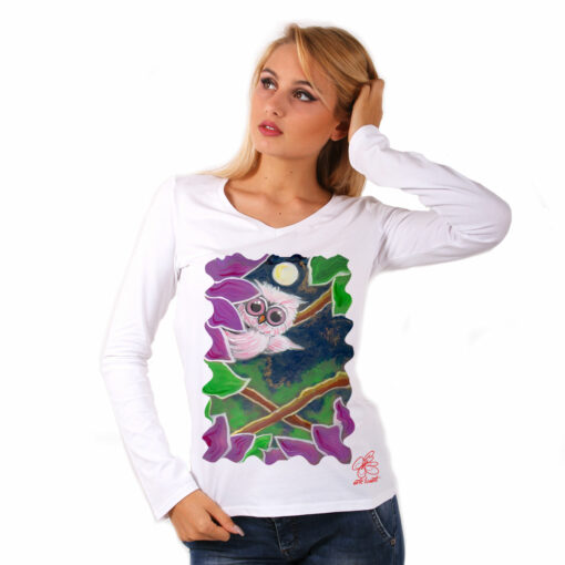 Maglia scollo a V – La civetta e la luna