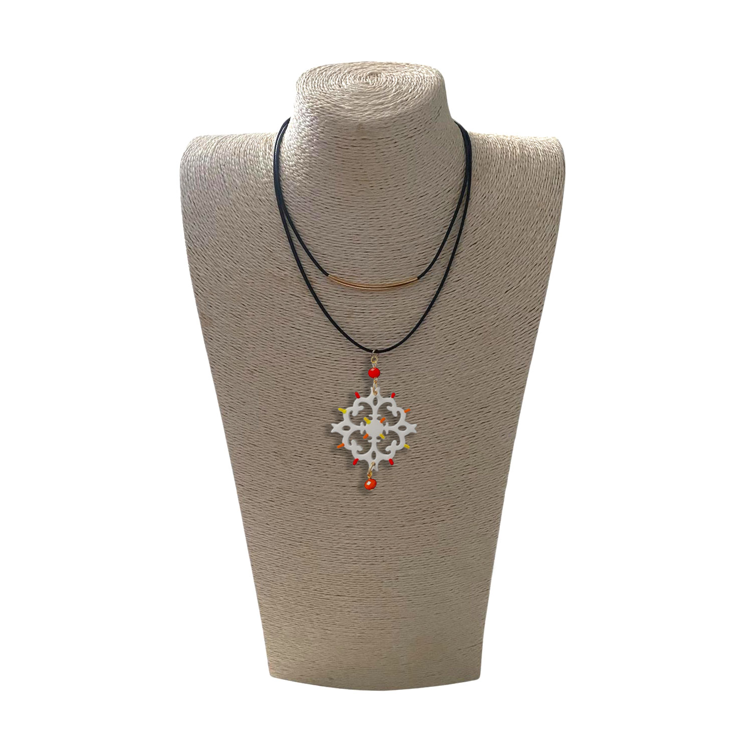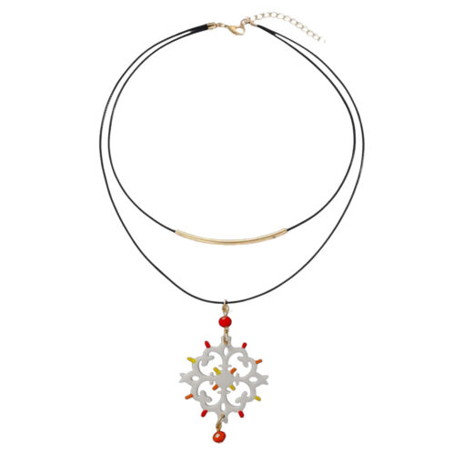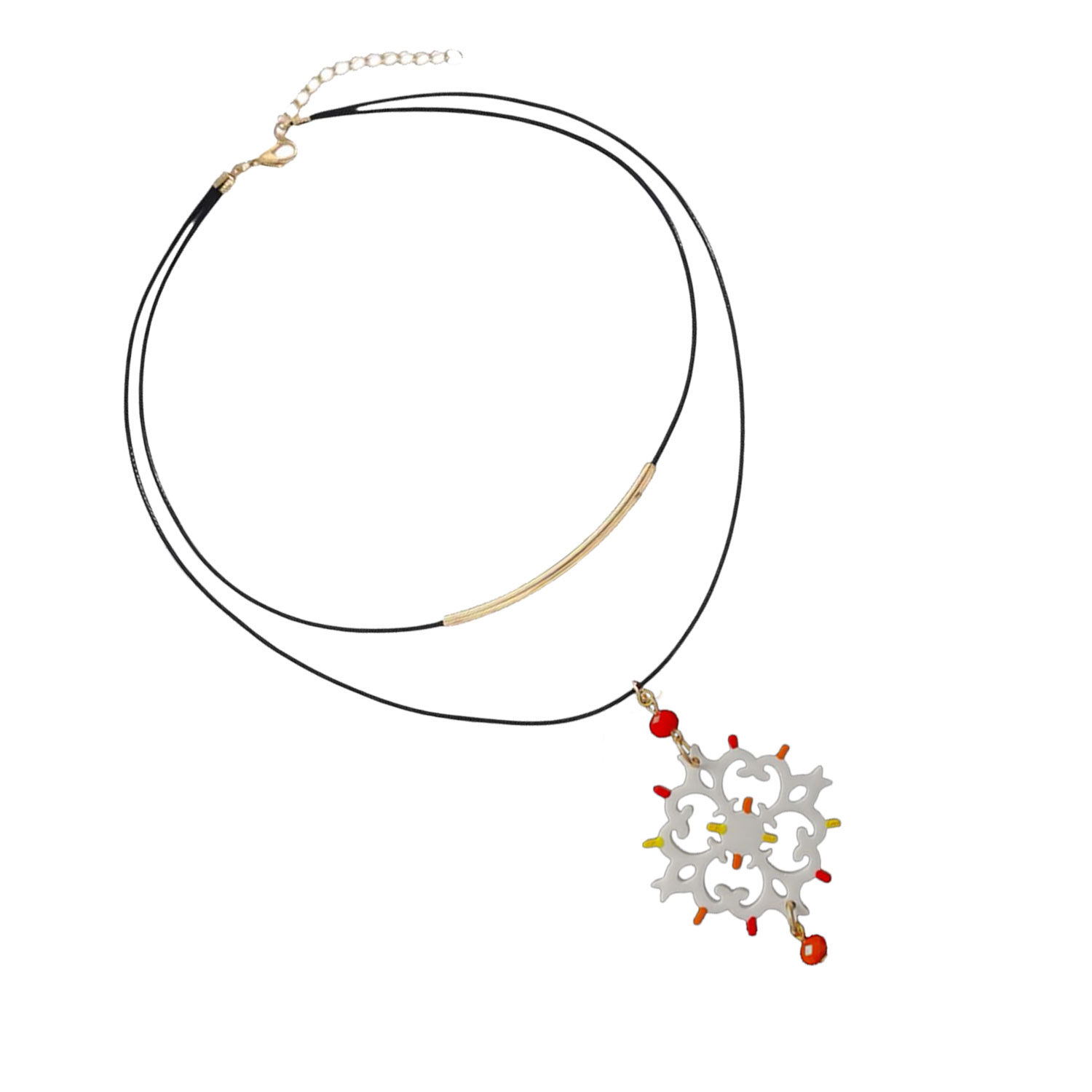 Collana dipinta a mano – Luminarie Salentine Rosso: Pendente in Plexiglass Dipinto a Mano, gioiello unico Made in Italy. Un omaggio alle iconiche luminarie delle feste di paese, simbolo di gioia e tradizione, reinterpretate in chiave artistica e moderna. Le luci stilizzate prendono vita su plexiglass grazie a una minuziosa pittura a mano, che cattura i toni caldi e vibranti del Salento: il rosso passionale della pizzica e il giallo dorato del sole che bacia la terra.