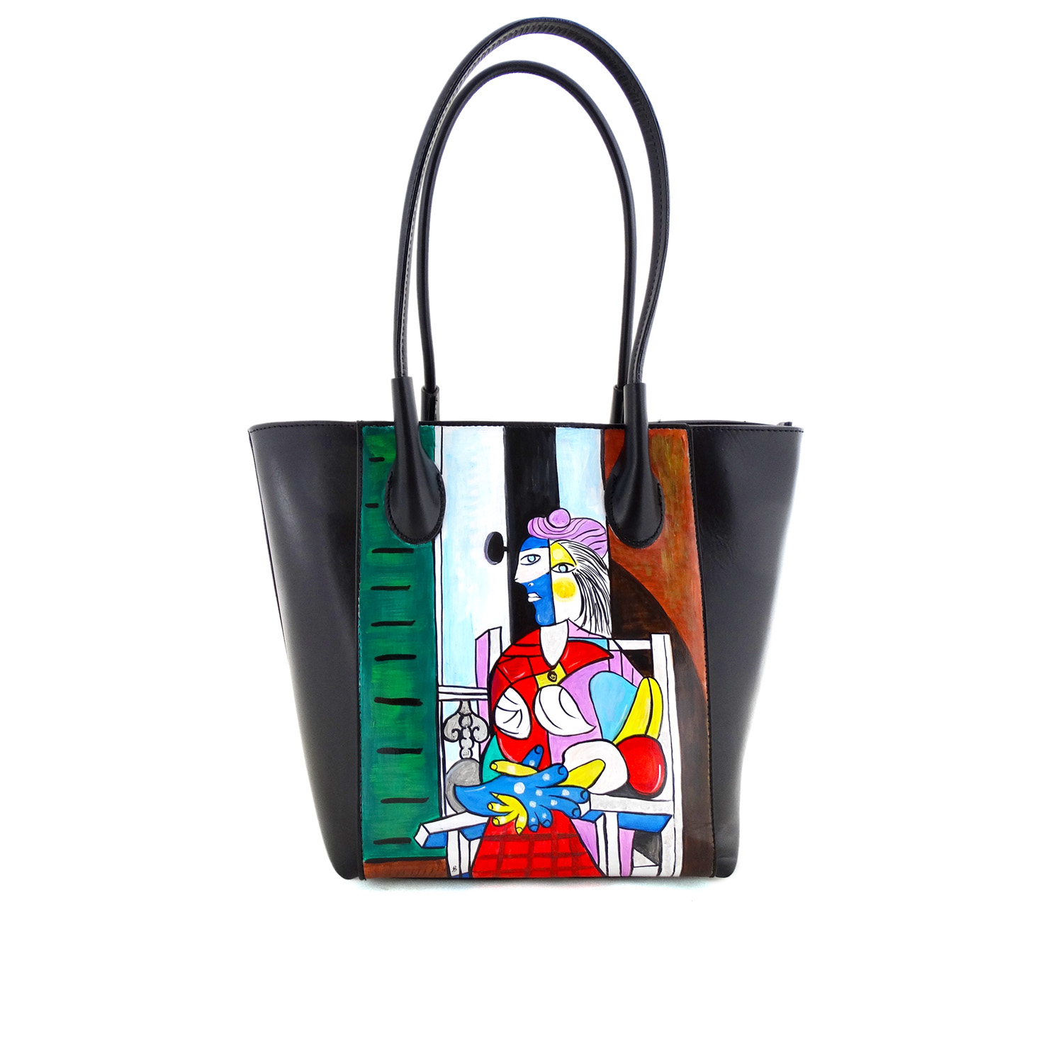 Borsa dipinta a mano – Donna seduta davanti alla finestra di Picasso: Il Colore e l’ eccentricità del padre del cubismo sulla tua borsa, per un un look spensierato ed originale.