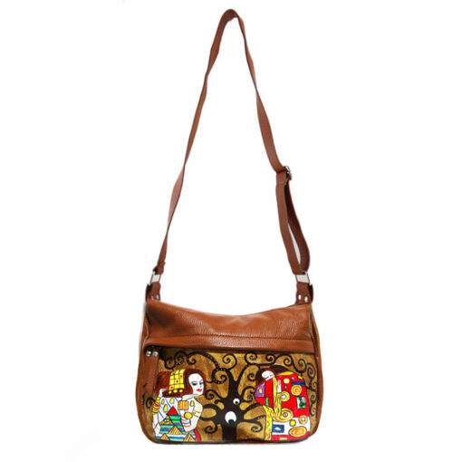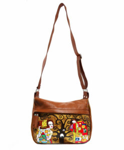 Borsa dipinta a mano – L’ albero della vita Klimt: Interpretazione ArteLisanti in una borsa artigianale che diventa ancora più preziosa grazie al fantastico oro cangiante alla luce. Le figure sono in primo piano ricche di dettagli e di particolari.