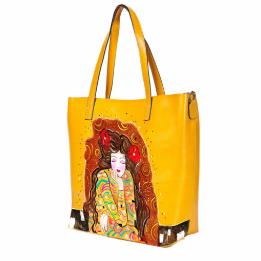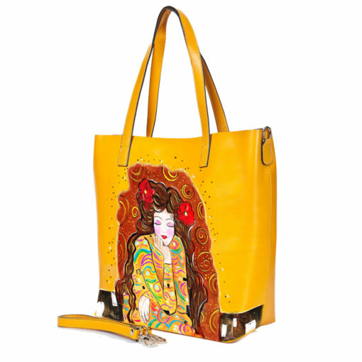 Borsa dipinta a mano – Omaggio a Gustav Klimt: Un omaggio alla seduzione e alla bellezza femminile celebrata da Klimt nella maggior parte dei suoi lavori, fantastici dettagli e colori brillanti, una borsa artigianale preziosa 100% made in Italy.
