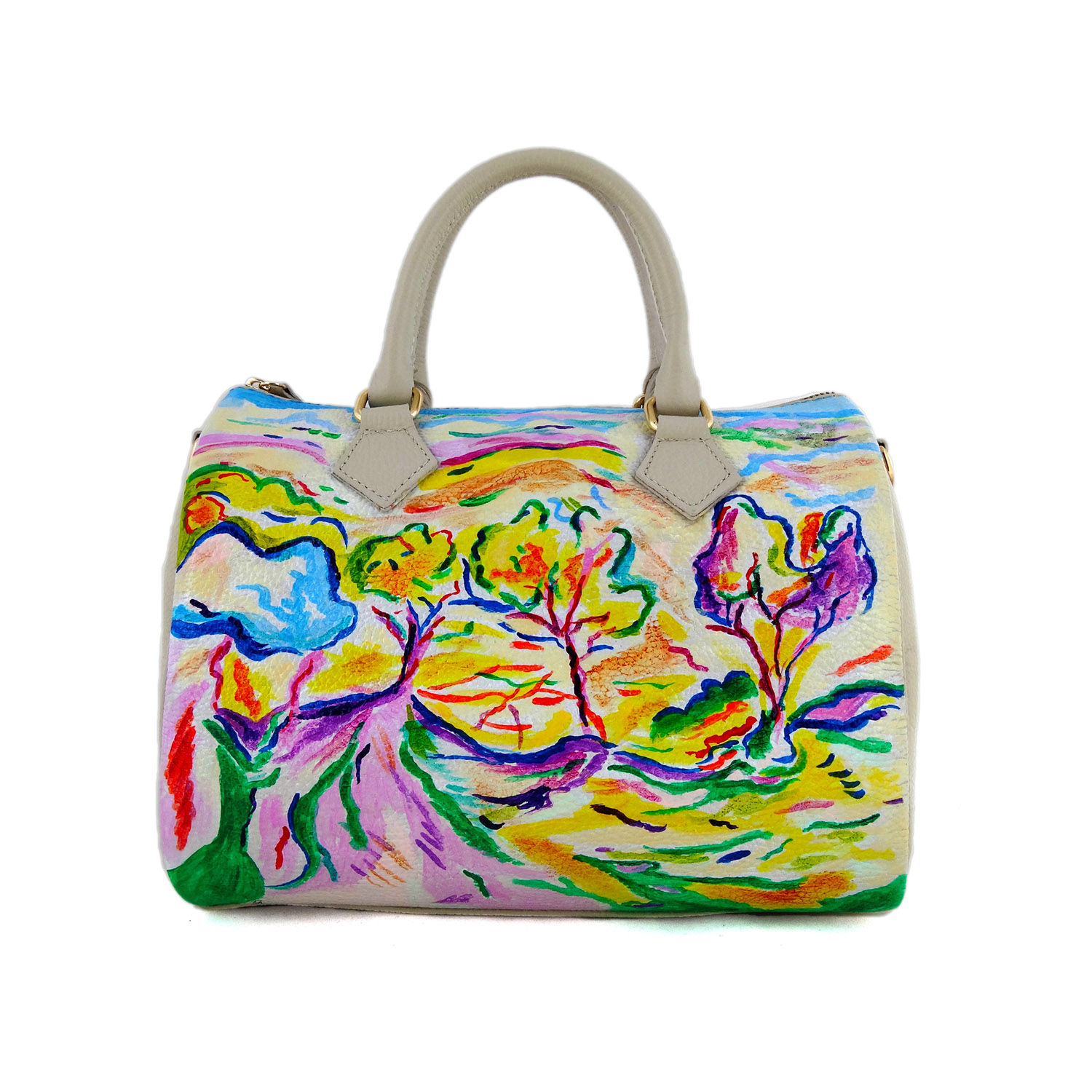 Borsa dipinta a mano – Paysage à la Ciotat di Braque: rivisitazione ArteLisanti con colori accesi e brillanti, infinite sfumature e campiture rendono unica questa borsa.
