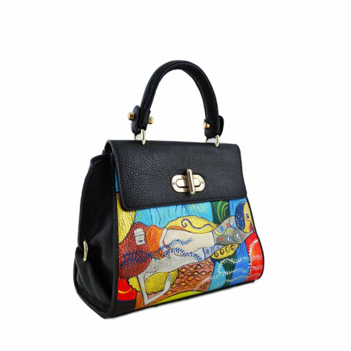 Borsa dipinta a mano – Serpenti d’acqua di Klimt: I corpi sinuosi di Klimt avvolti da colore e dettagli oro. Borsetta artigianale, variopinta ricca di dettagli.