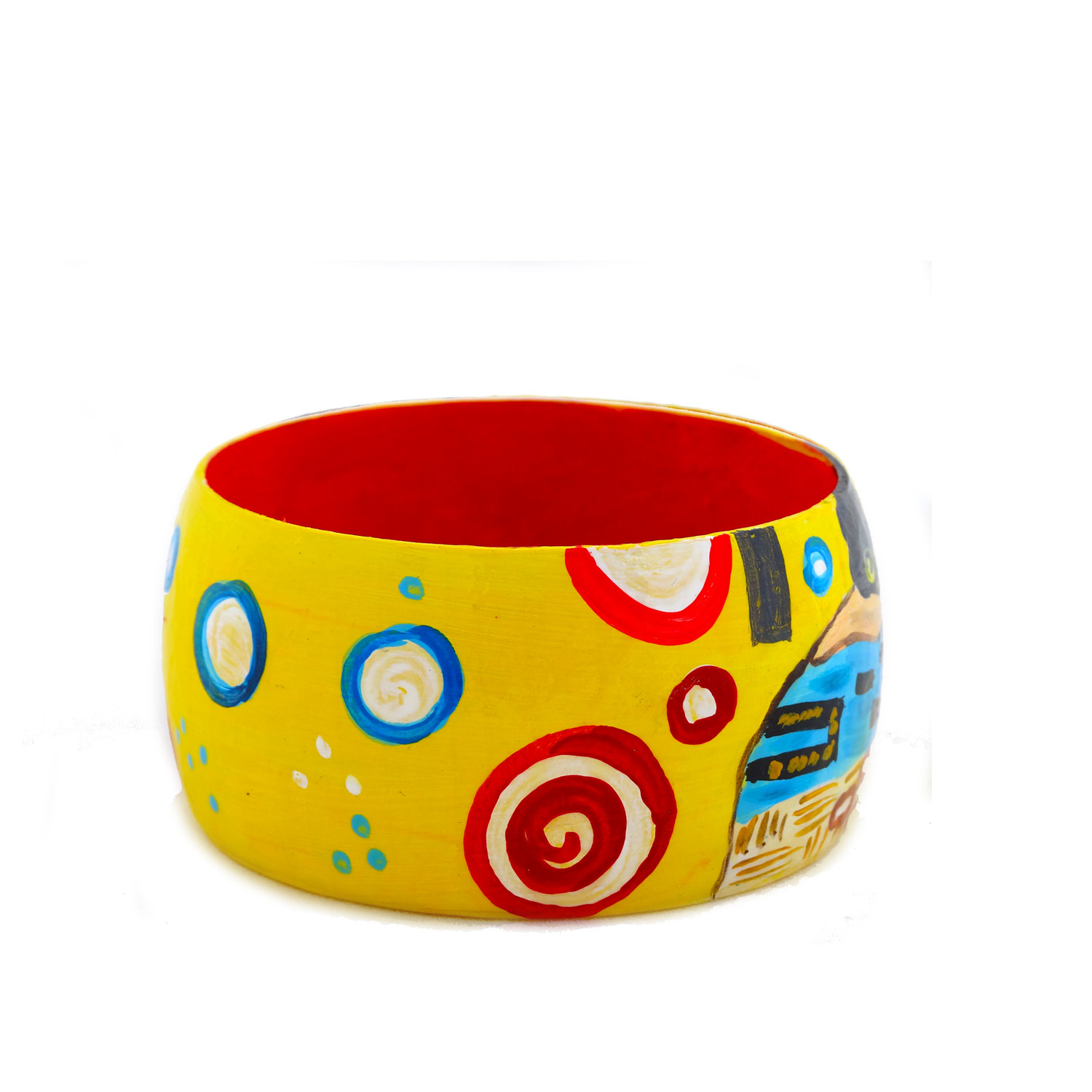 Bracciale dipinto a mano – Omaggio al Bacio Appassionato di Sophie Vogel: Due amanti che si stringono stretti avvolti da abiti preziosi, colorati e ricchi di dettagli.