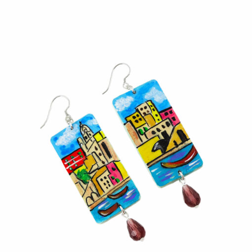 Orecchini dipinti a mano – I love Procida: Mare cristallino e un elegante borgo colorato, tante casette collegate da caratteristiche scale rendono questa piccola isola un gioiello di qui la nostra bella Italia può vantarsi.
