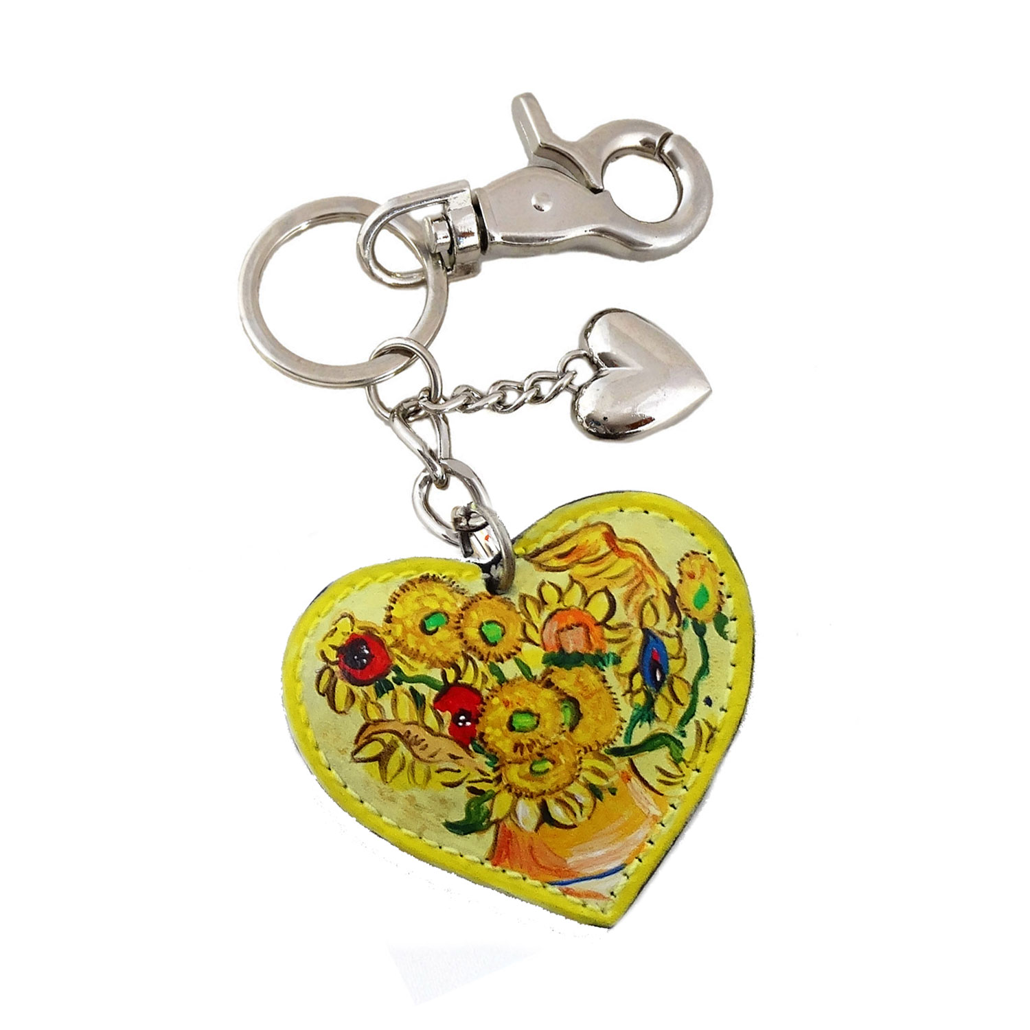 Portachiavi dipinto a mano – I girasoli di Van Gogh: I Girasoli sono il soggetto che più di ogni altro è legato al nome di Van Gogh. Il Giallo, Ocra, Marrone e Arancione di questo dipinto spiccano su questo portachiavi artigianale, variopinto e personalizzato; per avere il vaso di fiori più famoso della storia dell’arte a spasso con voi.