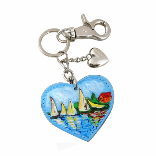 Portachiavi dipinto a mano – Regate ad Argenteuil di Monet: Le pennellate orizzontali di Monet con le barche sulla Senna colorano questo splendido portachiavi.