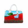 Borsa dipinta a mano – Paesaggio estivo: Casette e barche colorate, il mare e colori vivaci in un suggestivo paesaggio dai tratti fumetto.