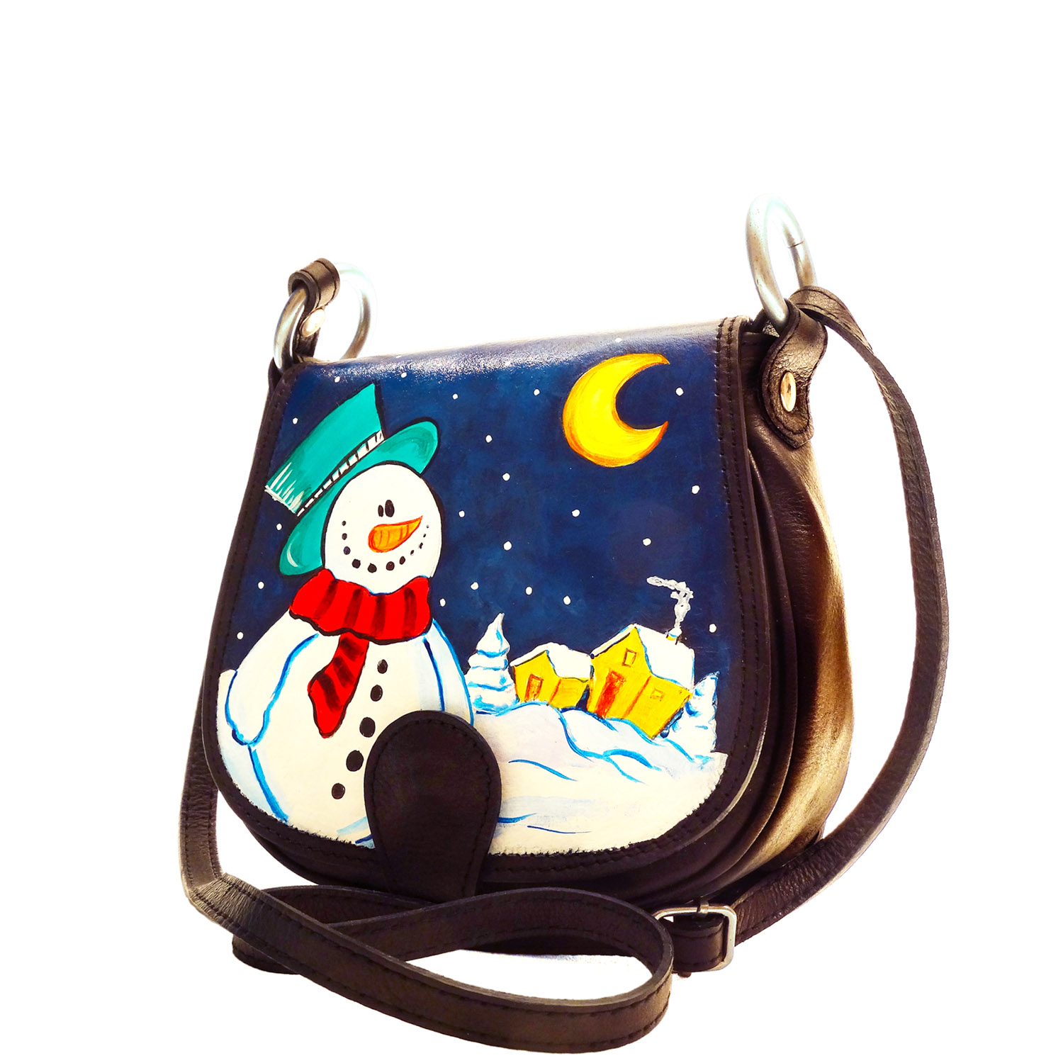 Borsa dipinta a mano – Pupazzo di neve: Un tenero pupazzo di neve ci ricorda che l’inverno è arrivato! Colori vivaci e tratti cartoon per questa adorabile tracolla.