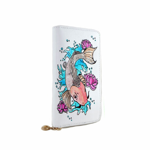 Portafoglio dipinto a mano – Cat fish: tratti orientali e colori ad effetto acquerello impreziosiscono questo fantastico accessorio dipinto a mano comodo e pratico.