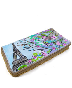 Portafoglio dipinto a mano – Parigi in Fiore: Viene colto il momento in cui la natura di Parigi sboccia in tutta la sua purezza e delicata eleganza. Una giornata di sole in cui sarà piacevole passeggiare tra le strade di questa maestosa ciittà. Paris mon amour!